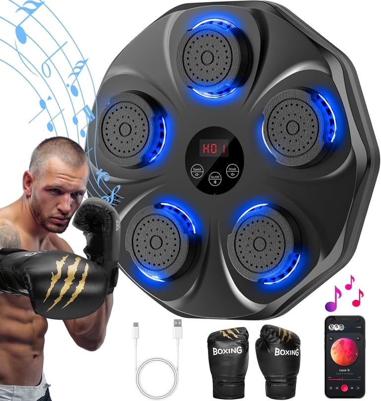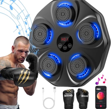 [LED Display & Bluetooth] The LED display will show the number of hits you make and record your every progress and growth. Smart music boxing machine for kids supports bluetooth music, you can choose your favorite songs during boxing workout. Surrounding speakers and cool lights keep you immersed in your training.
